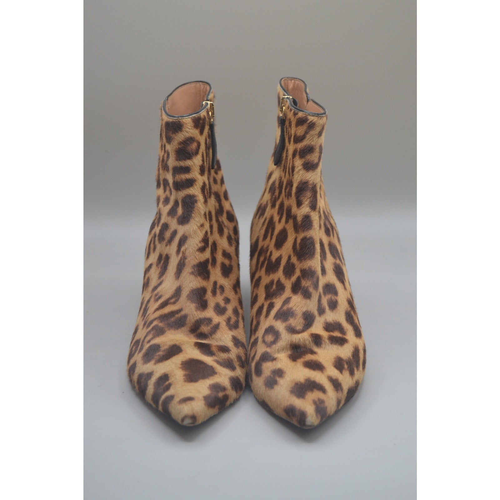 Aquazzura Fierenze Vero Cuoio Womans Leopard Pump Boot Calf Hair SZ 39