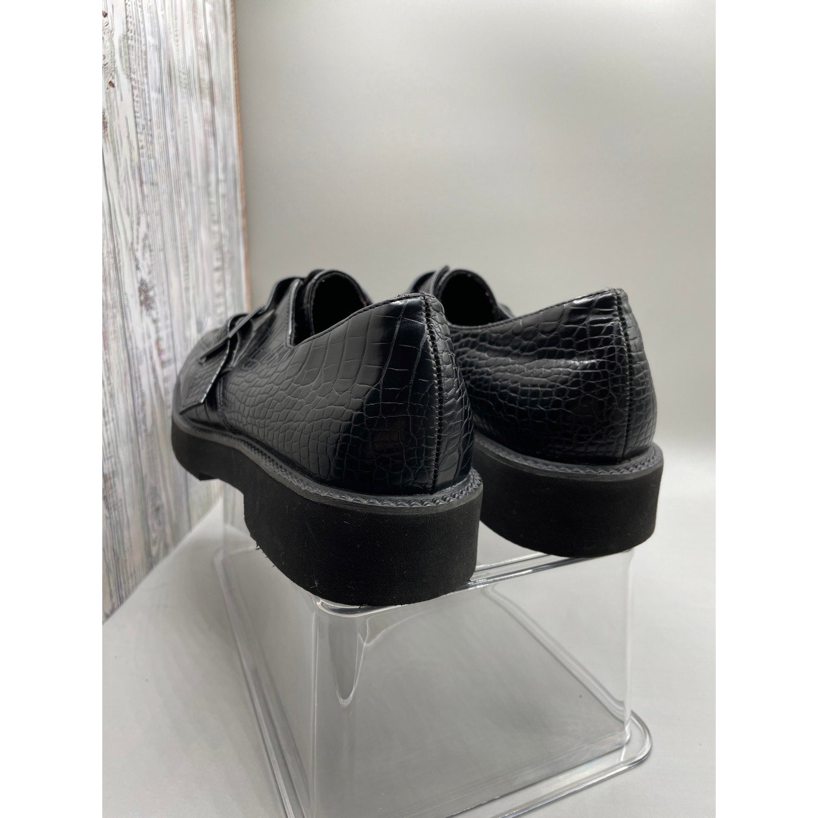 Asos Design Macaroon Flatform Monk Shoes Black Crocodile Woman’s Chunky Loafer 9
