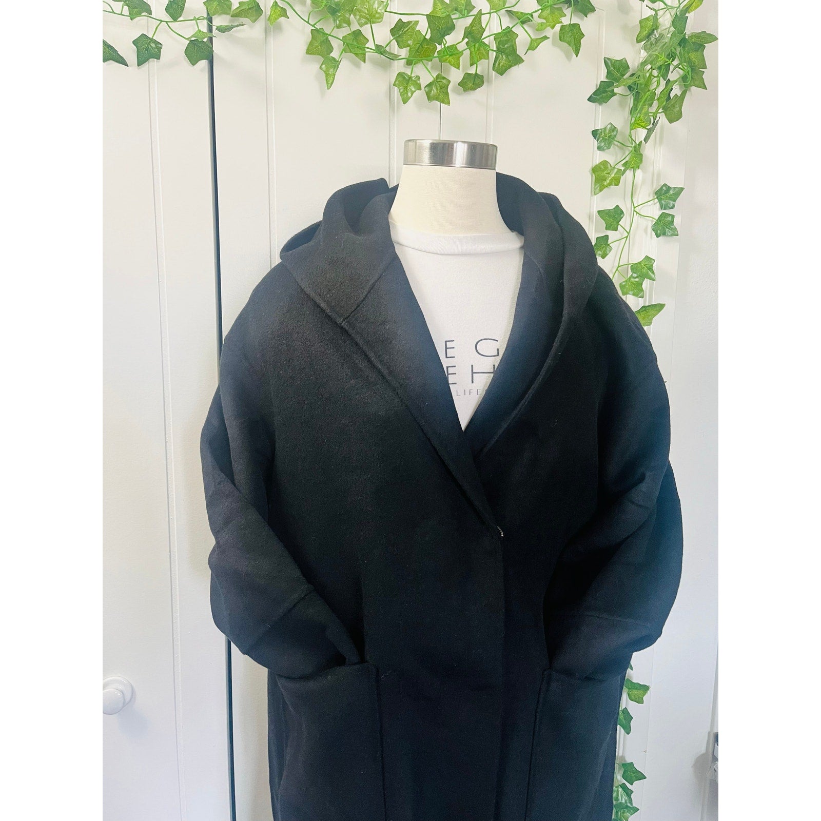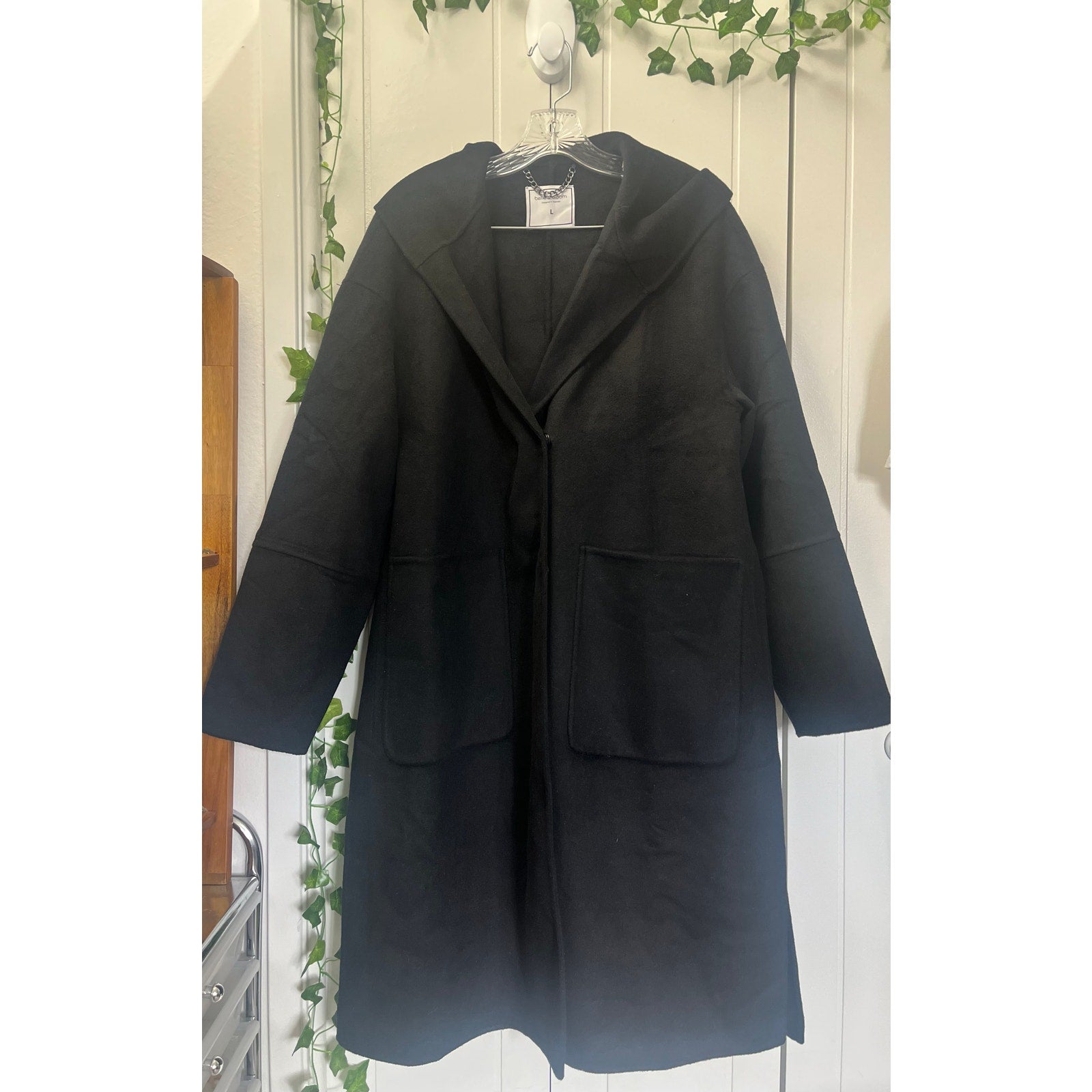 Belle & Bloom Walk This Way Women’s Black Wool Coat w/Hood Size Large MSRP $255.00