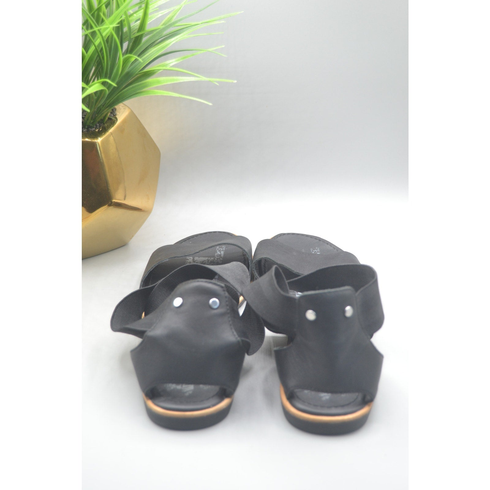 Black Sorel Ella III Size 11 Preloved Leather Flat Sandals With Stretchy Strap