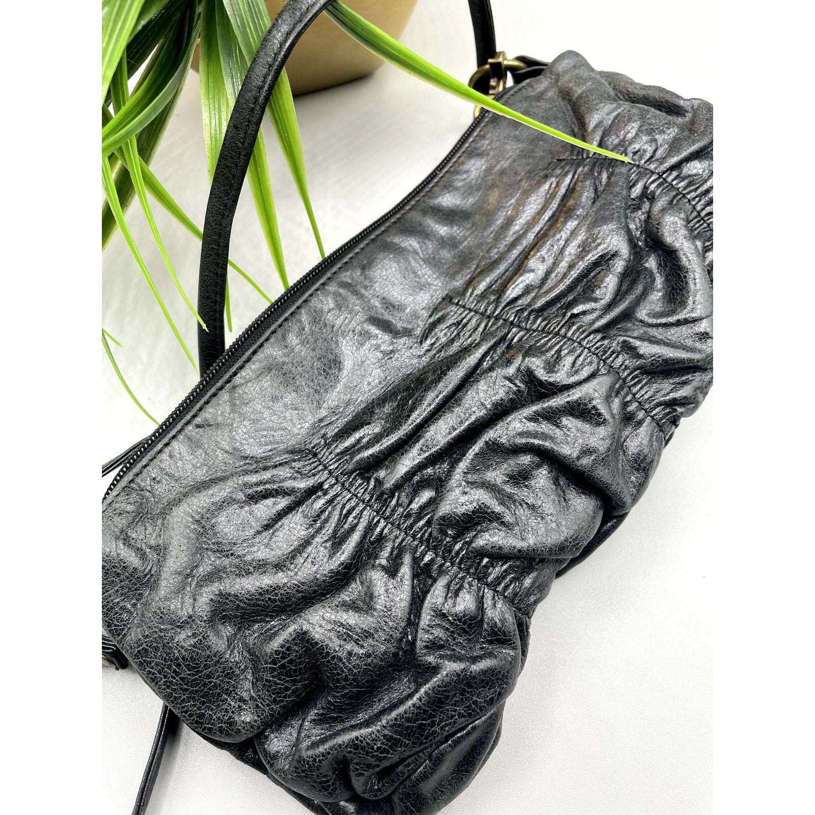 Imagine the rich texture of supple black leather, meticulously chosen to age beautifully over time, enhancing its vintage appeal with each passing day. The slouchy silhouette exudes effortless sophistication, effortlessly complementing both casual and more polished looks.