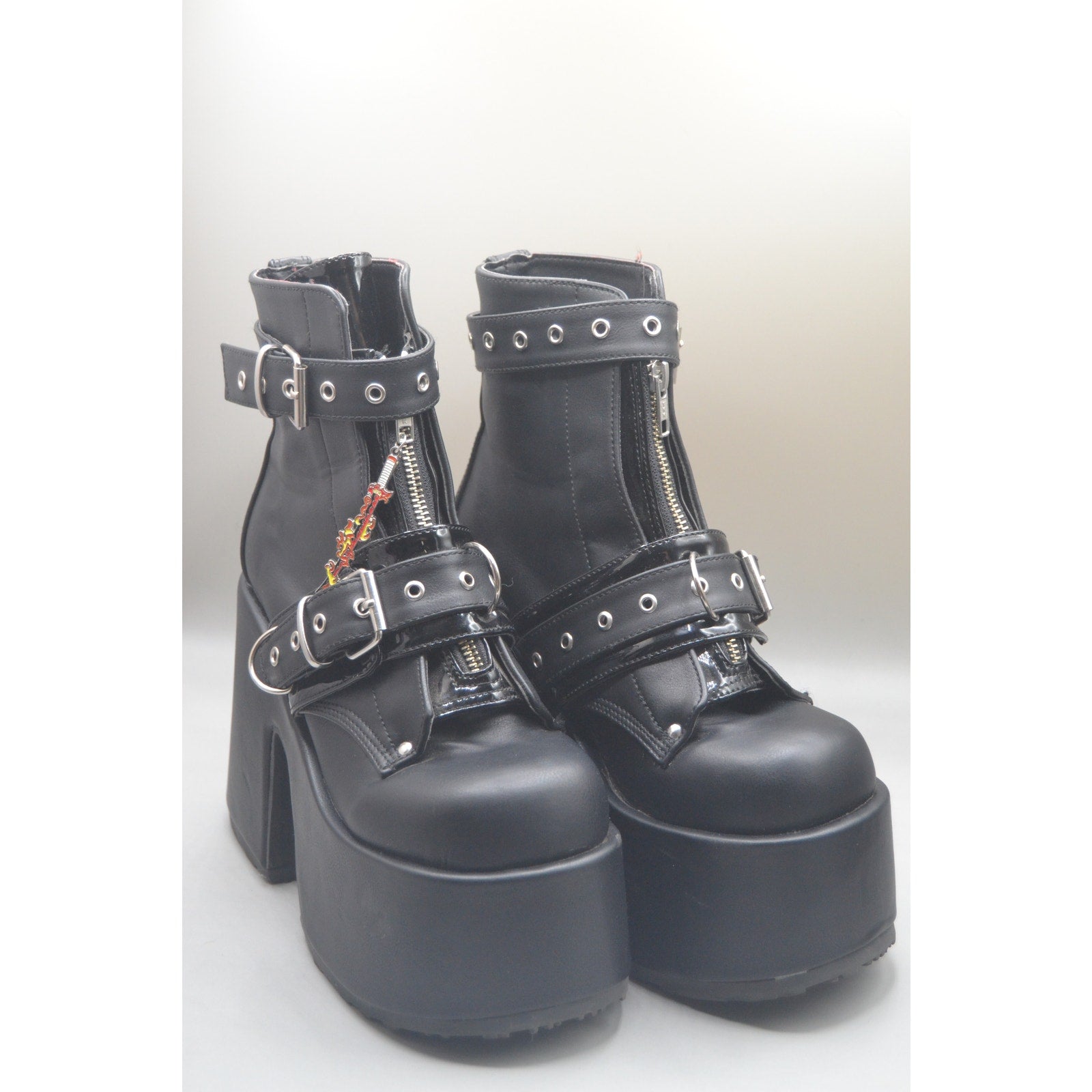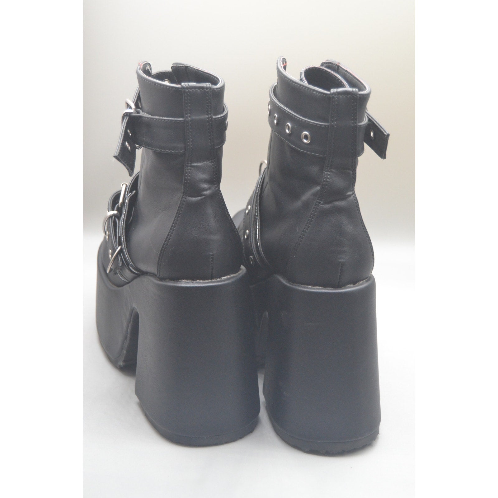 Demonia Platform Black Boots Belt Straps Zipper NWOT SZ 8