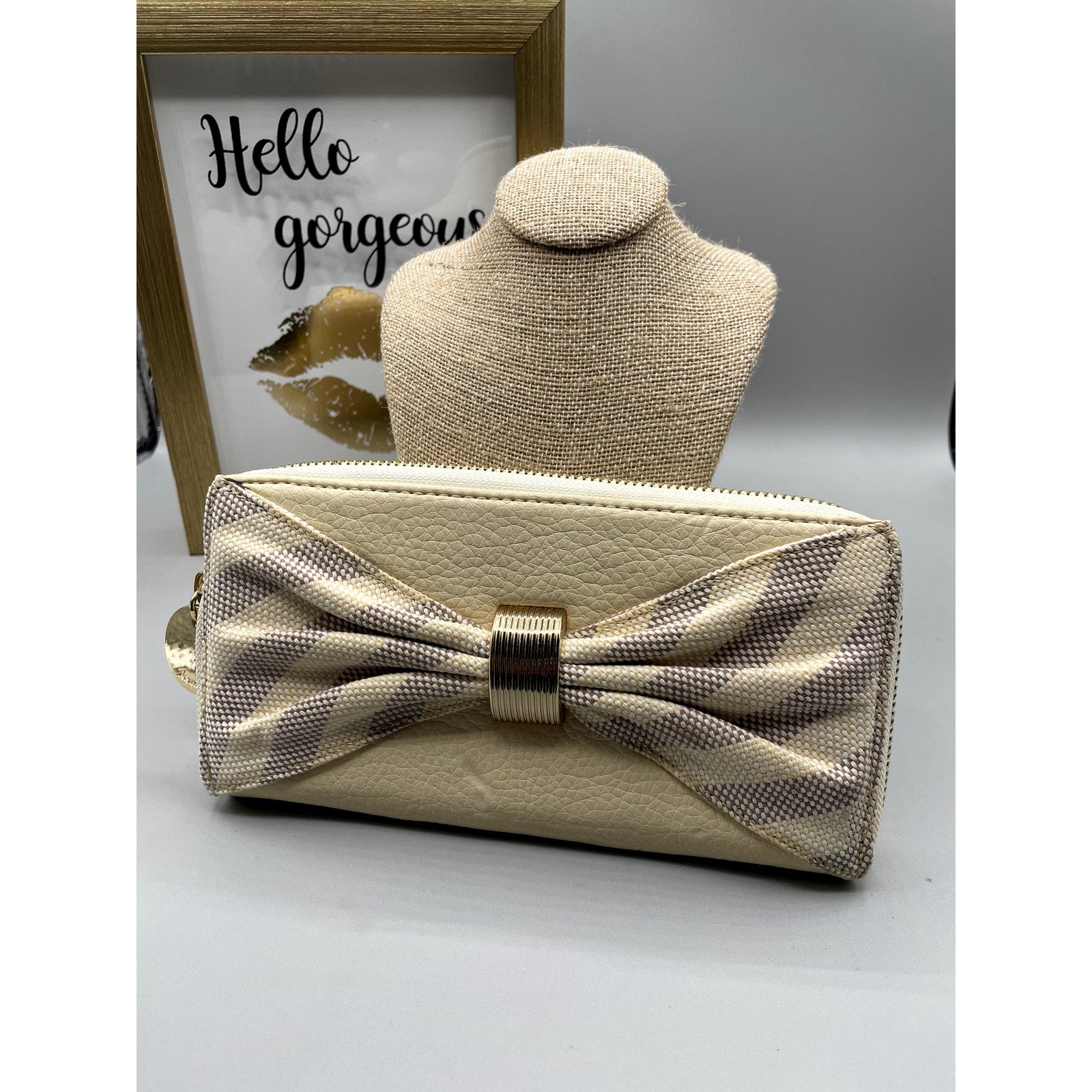 Deux Lux Cream Color Wallet with Gold Detail