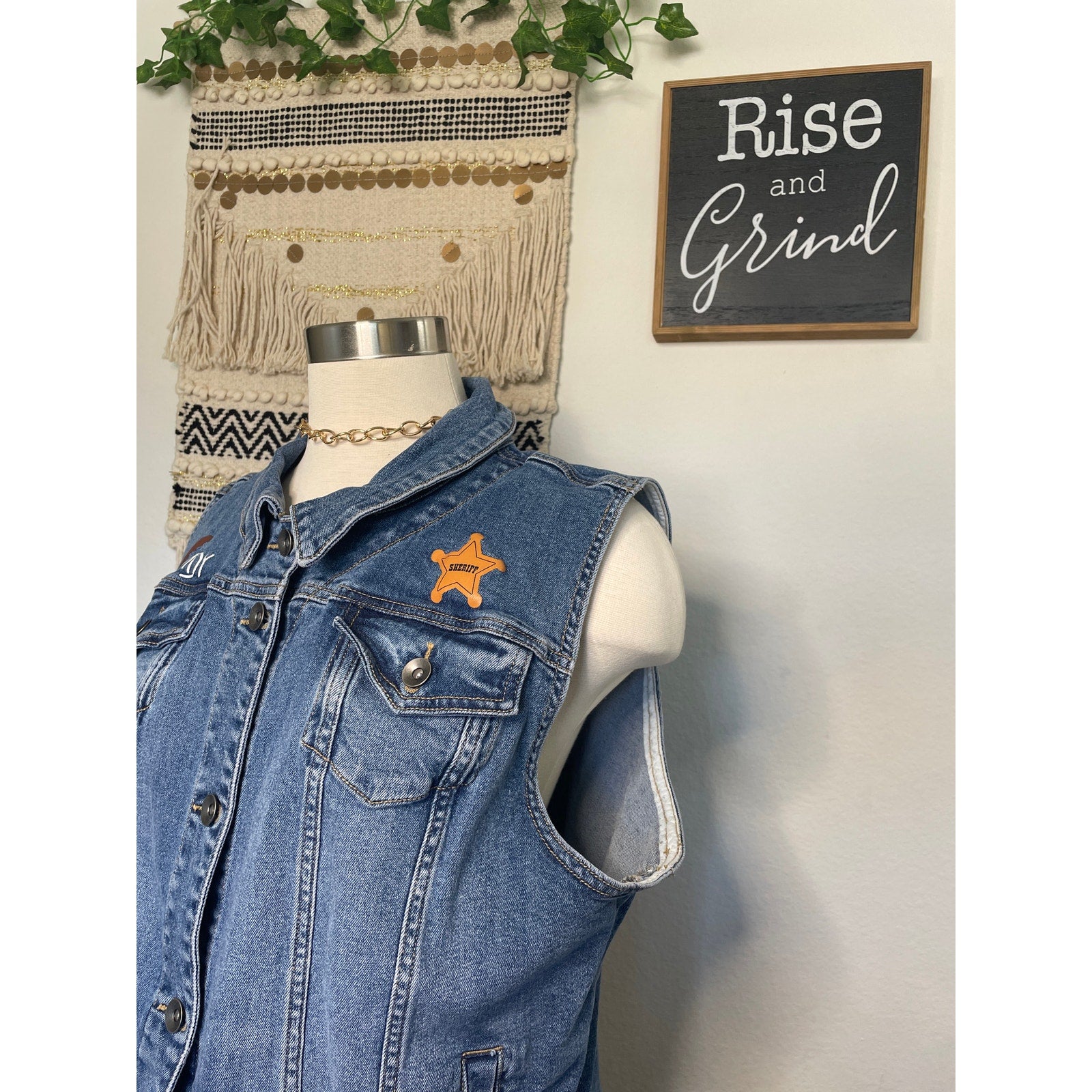 Howdy Partner! Get ready to add some Pixar fun to your wardrobe with this awesome Disney Pixar Toy Story Woody denim vest! This vest features a classic denim look with unique Woody-inspired details, perfect for any fan.