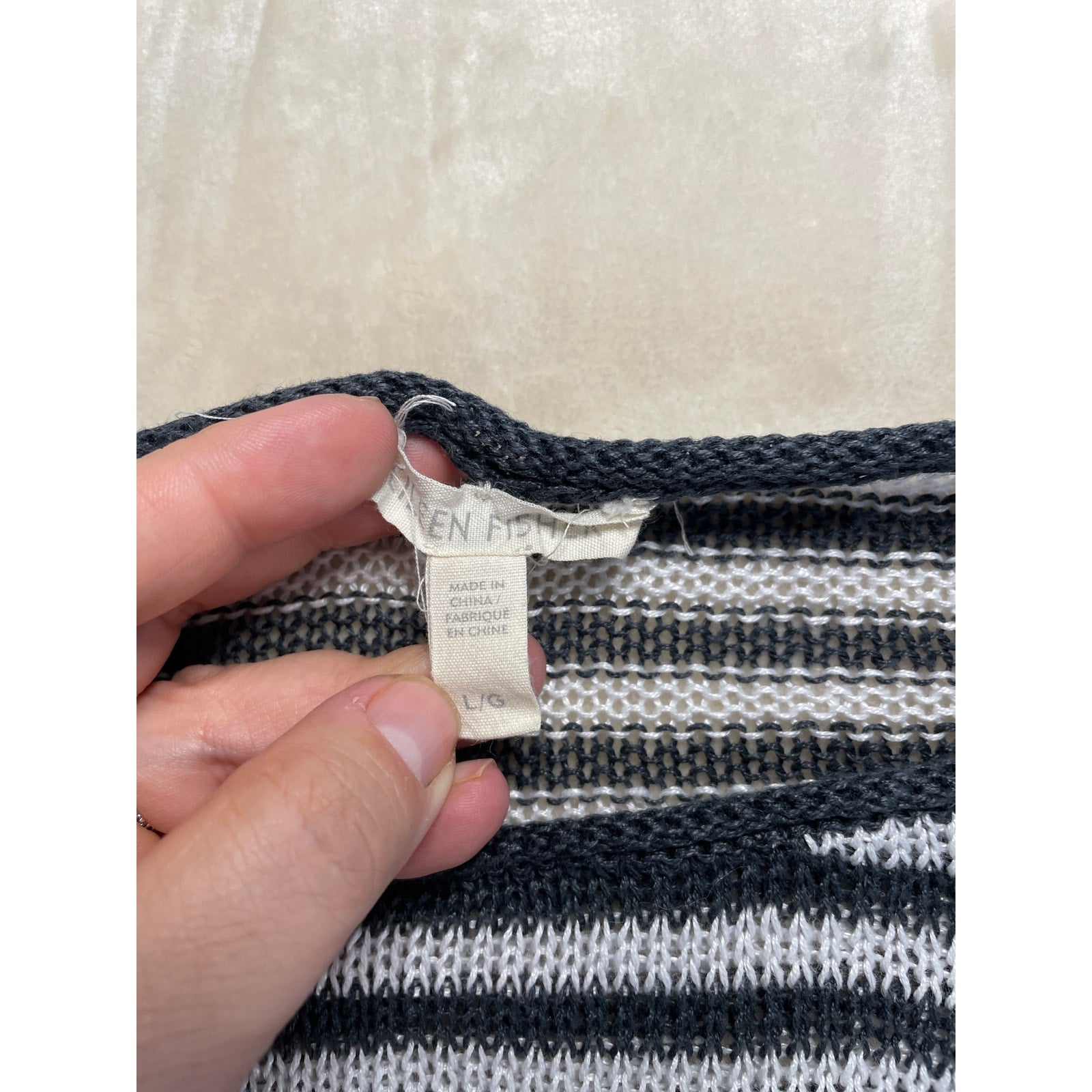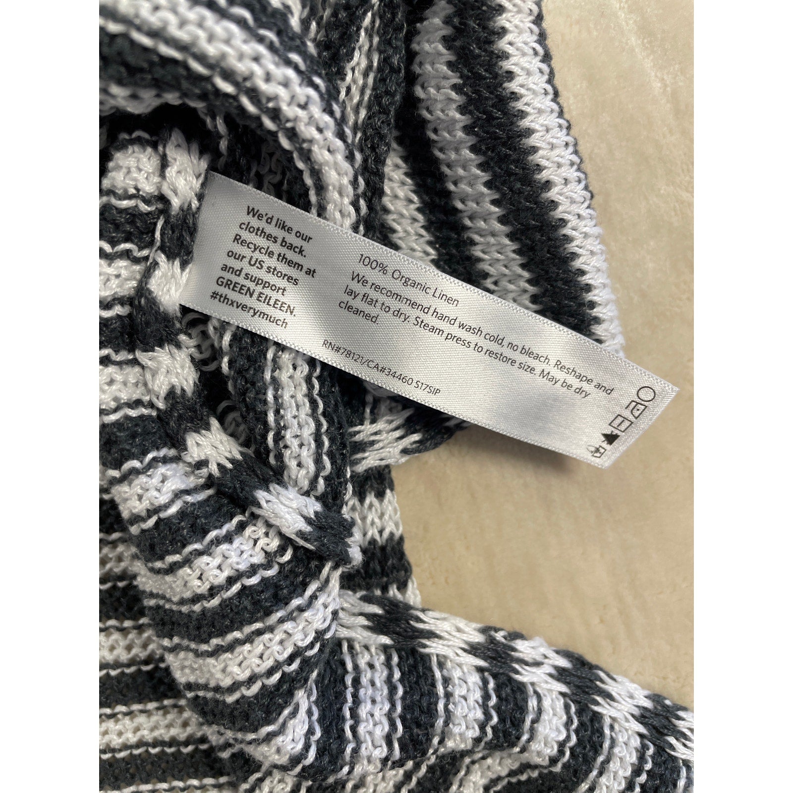 Eileen Fisher Womans Round Neck Stripped Organic Linen Loose Fit Top Large