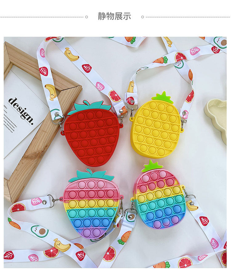 Fresa is the sweetest pop-it purse. Can be used as a shoulder purse or cross body. Make a great gift. Silicone material makes it easy to clean.
