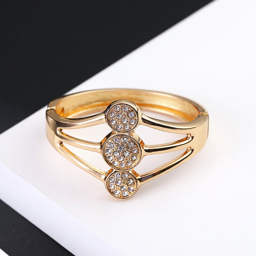 Beautiful gold hinge bracelet featuring high shine bling. Perfect accent accessory.