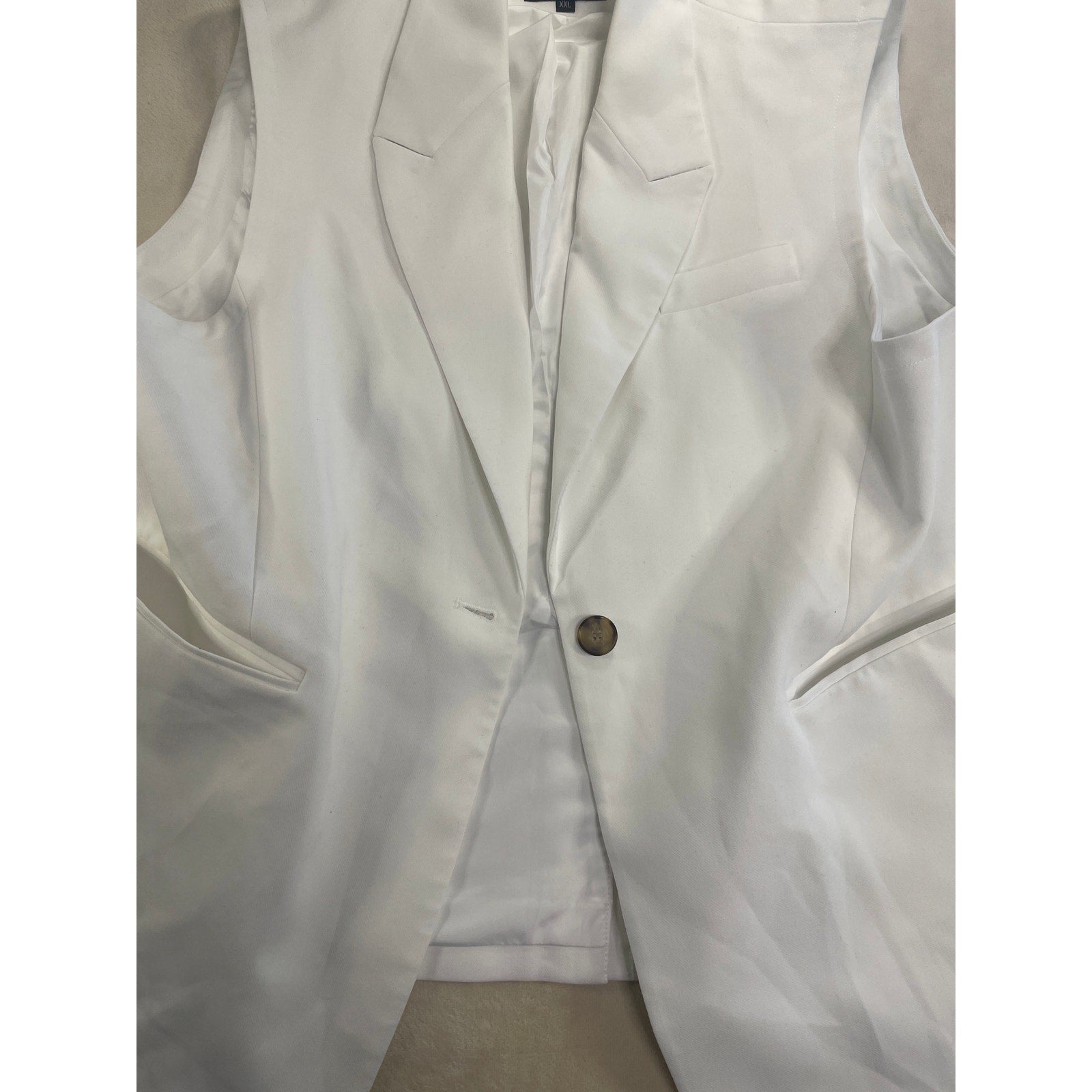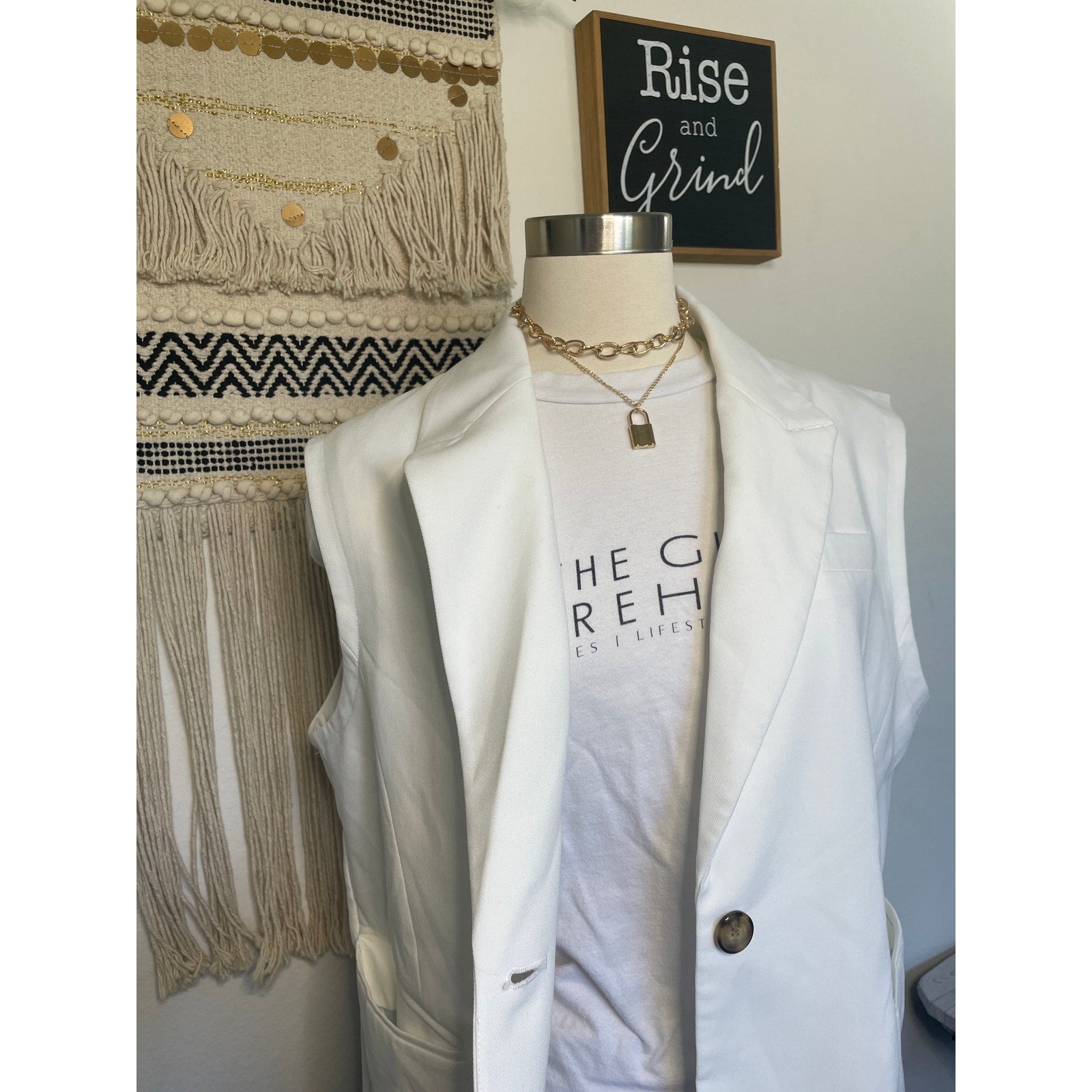 This stylish, one-button vest is perfect for adding a touch of sophistication to any outfit. The crisp white color makes it a versatile piece that can be dressed up or down.