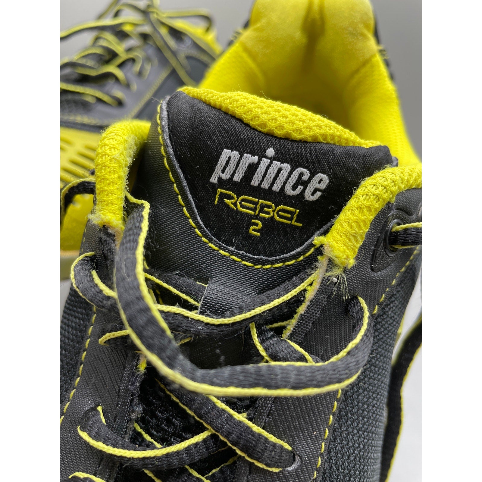 Elevate your game with these Prince Rebel 2 tennis sneakers! These lace-up shoes feature a sleek black and yellow design that will make you stand out on the court. Perfect for any tennis enthusiast, these sneakers offer both style and performance. Grab them now and experience the perfect blend of comfort and agility! In good preloved condition.