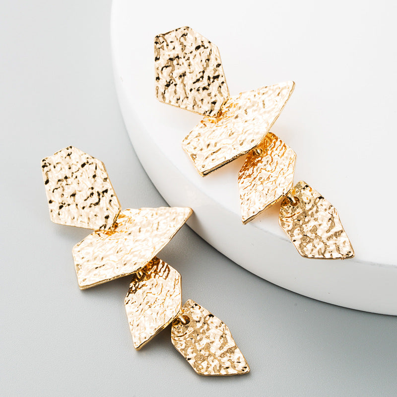 Red carpet ready with these earrings. Gold hammered texture emits high shine