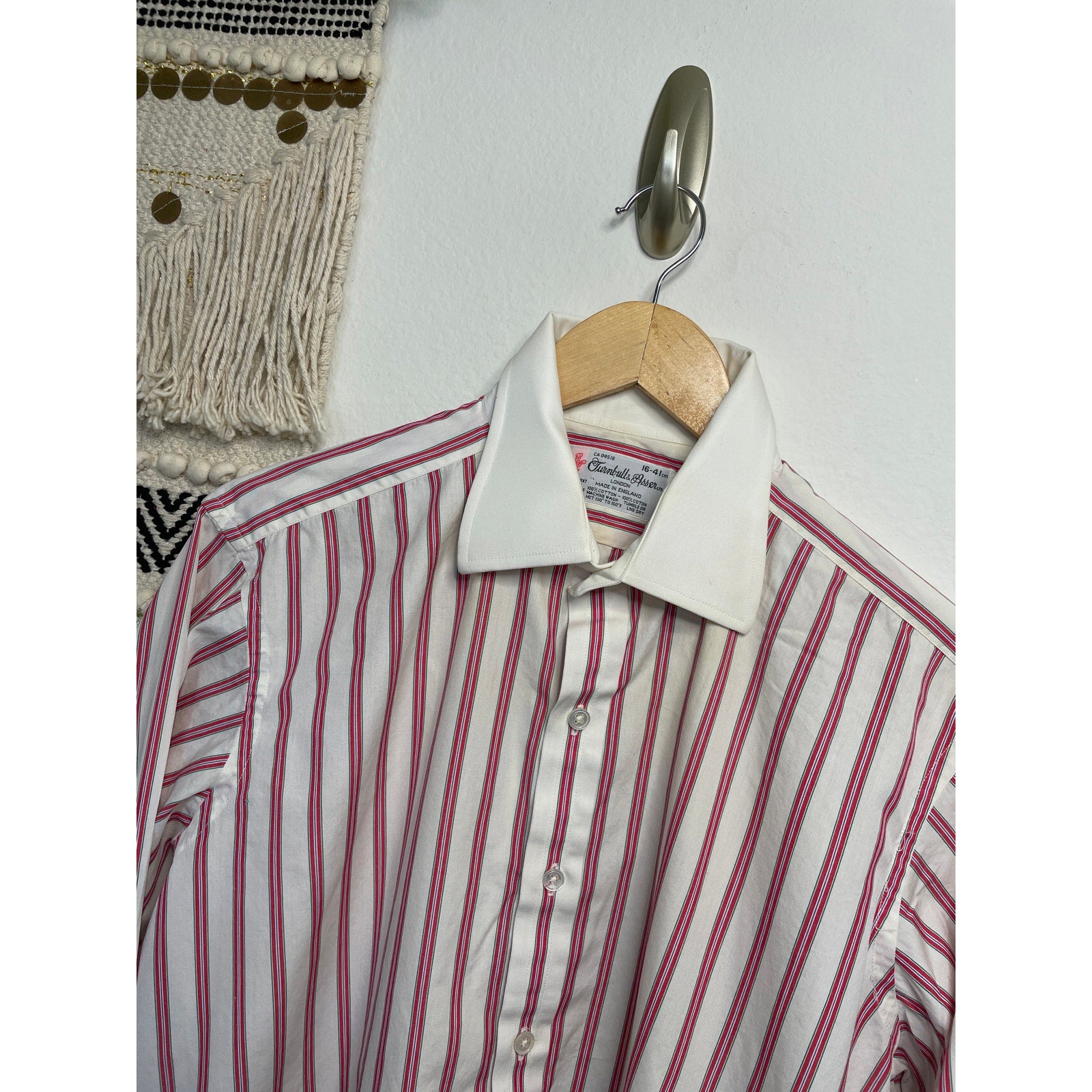 Step up your style game with this sophisticated vintage dress shirt from Turnbull & Asser. Crafted in England from 100% premium cotton, this shirt features a classic striped pattern that adds a touch of timeless elegance to any outfit. Perfect for business meetings, formal events, or adding a refined touch to your everyday wear.