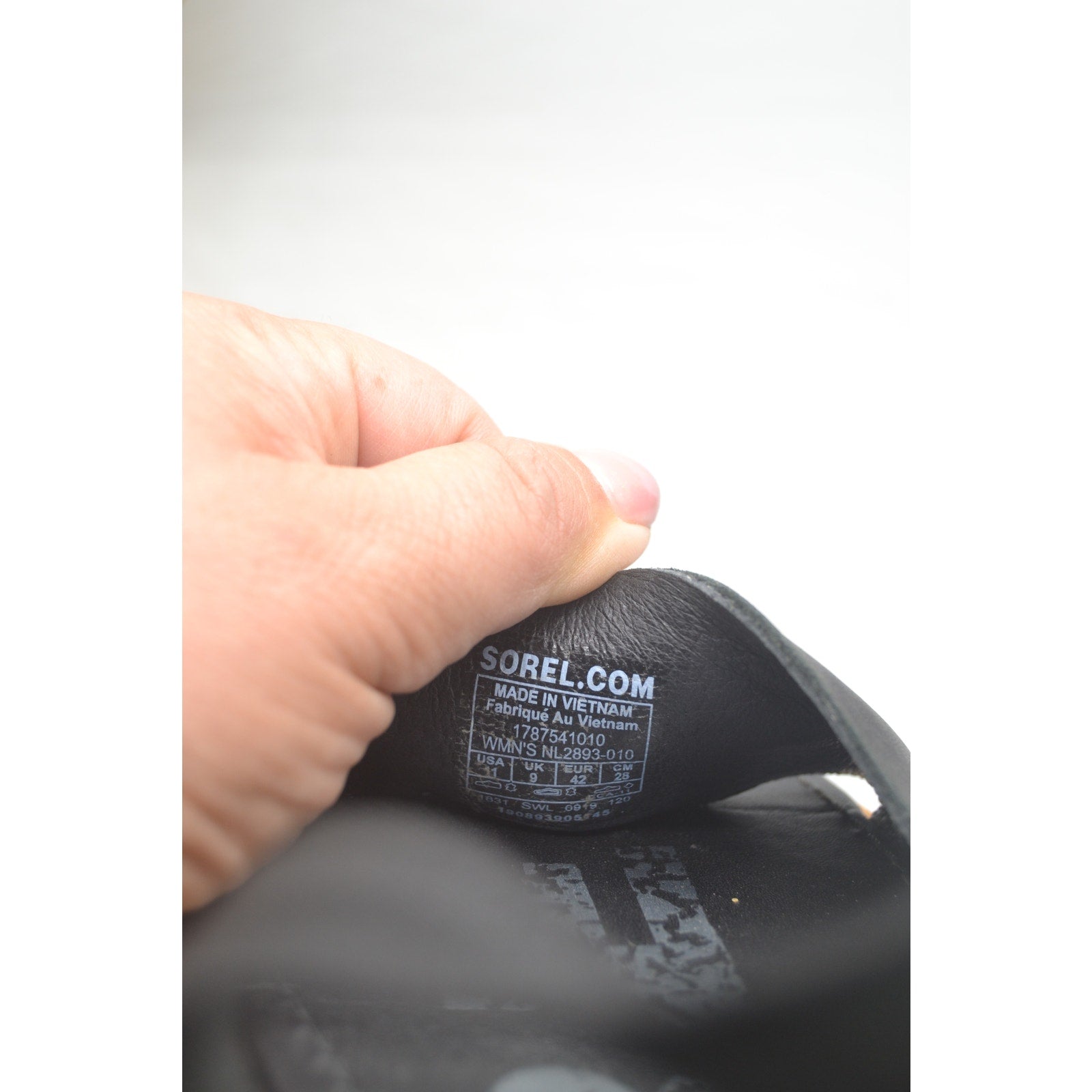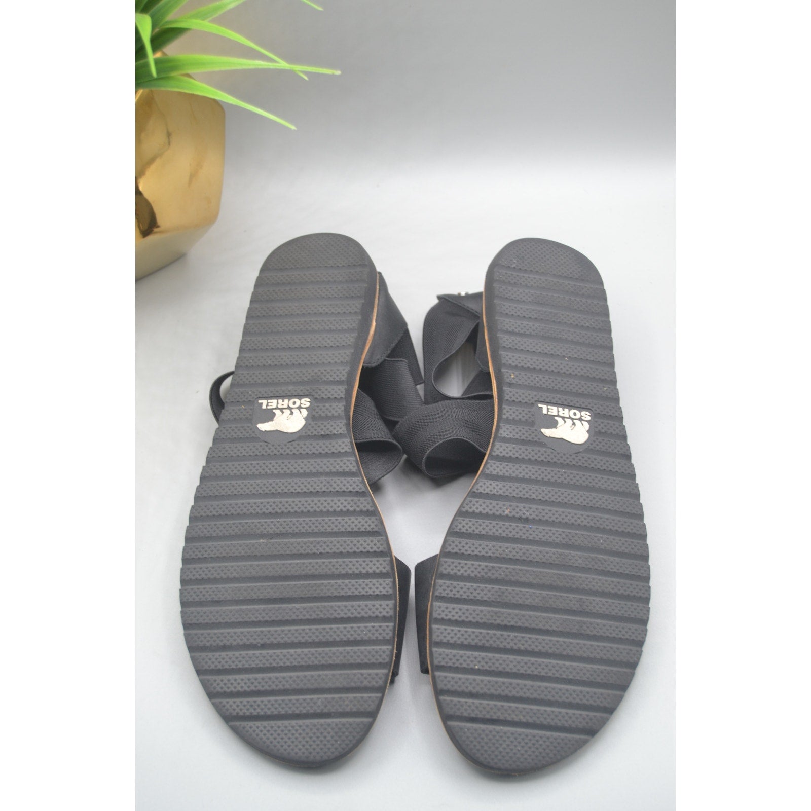 Black Sorel Ella III Size 11 Preloved Leather Flat Sandals With Stretchy Strap